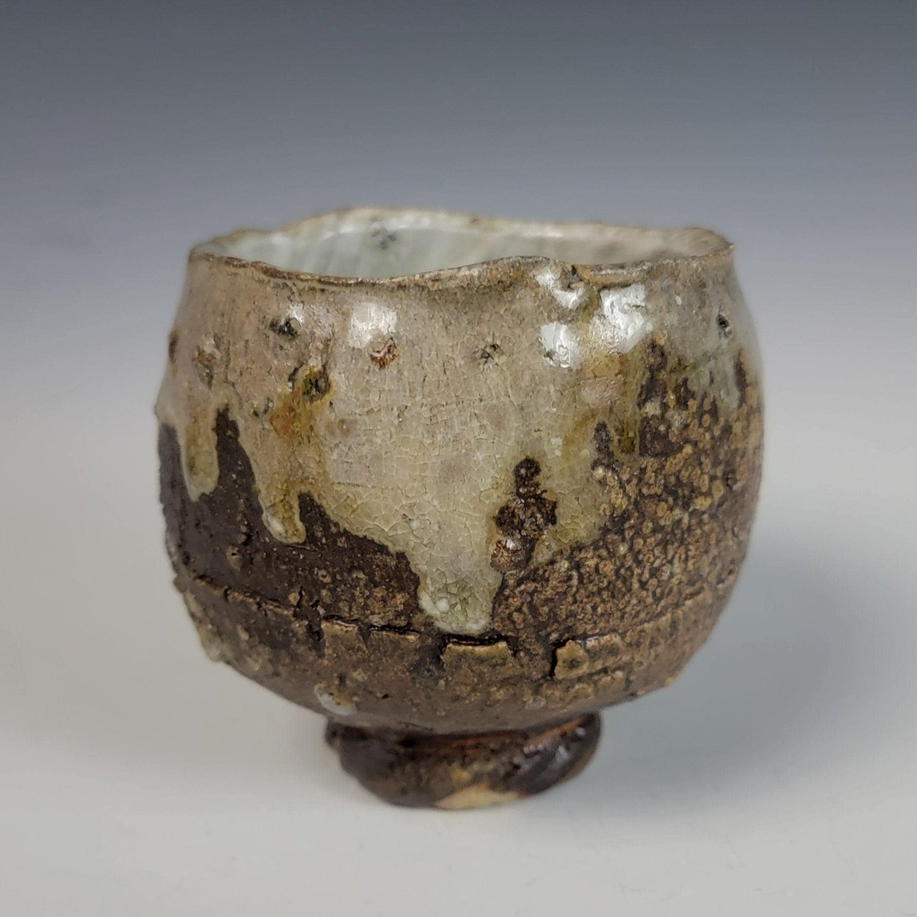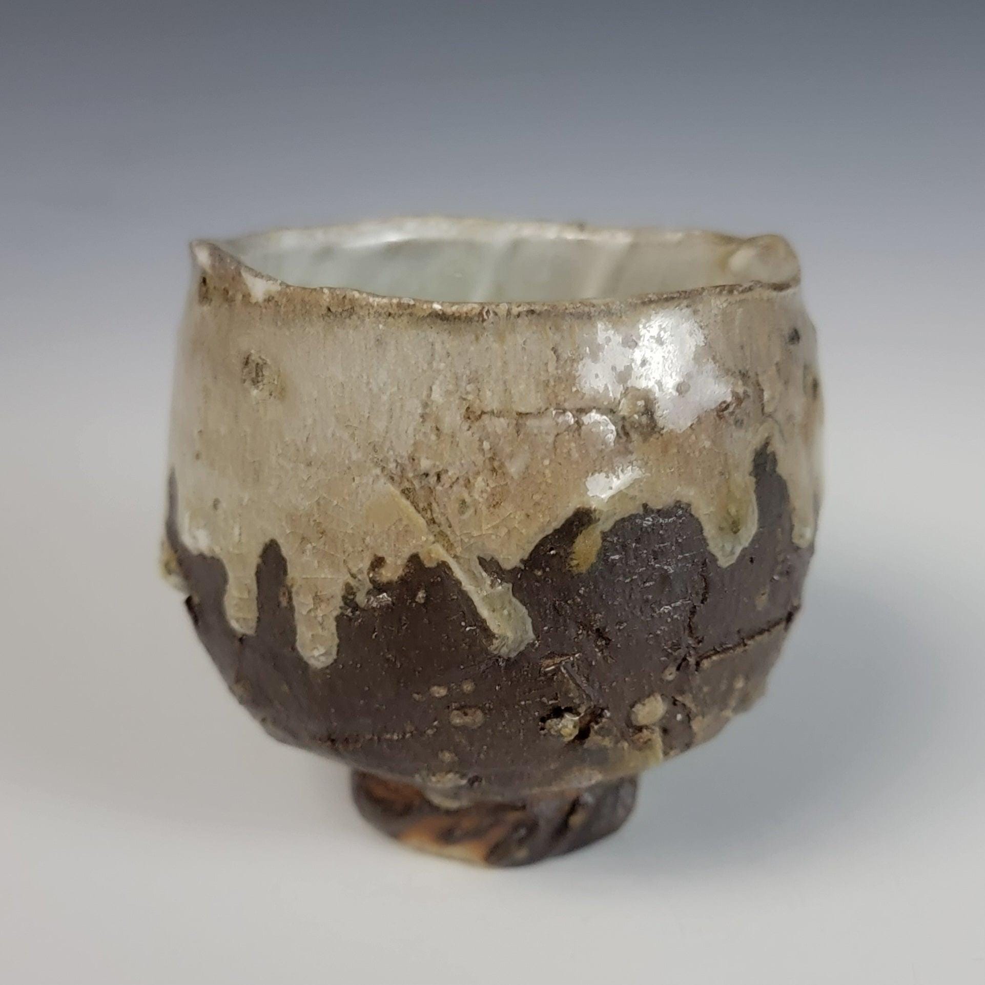 This hand-thrown and altered tea cup is a singular expression of a 5 Day journey through a wood-fired Anagama style kiln. More than just a vessel, it is a record of extreme heat, mineral transformation, and the unpredictable nature of traditional ceramic art.